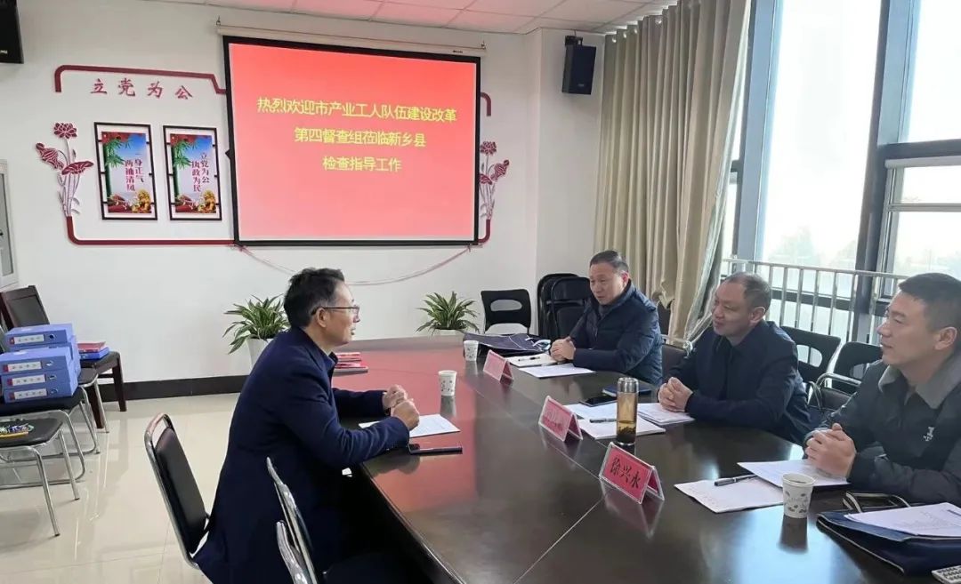 12月1日上午,新乡市政府办四级调研员、市第四督察组组长孙庆新一行三人莅临新乡县检查指导产业工人队伍建设改革工作。新乡县人大常委会副主任、新乡县总工会主席张善波,县总工会常务副主席程霄鹭及新乡县总工会产业工人队伍建设改革相关部门人员参加会议。