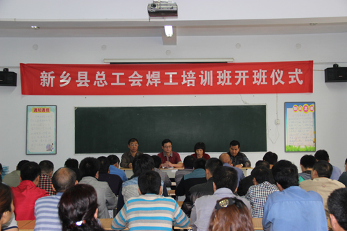9月26日上午,新乡县总工会在县职教中心综合楼2楼举行了2014年高级焊工培训班开课仪式。本次培训将免费为小冀镇河南万泰机械有限公司等4家企业的38名在职职工提供技能提升学习机会。
